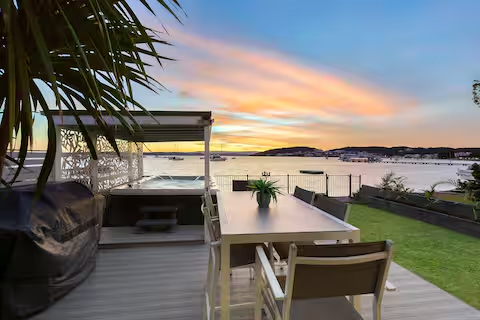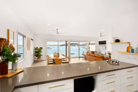 at this stunning 5-bedroom, 3-bathroom absolute waterfront home. A private lift connects two fully self-contained levels (no stairs) which