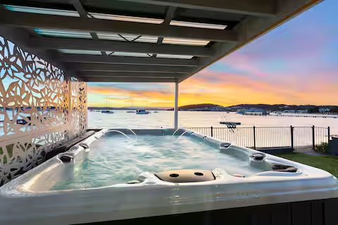 simply sit back and relax and enjoy the view! Swim in the lake or unwind in 9-seater spa. Minutes to Belmont’s cafes, restaurants, pubs,